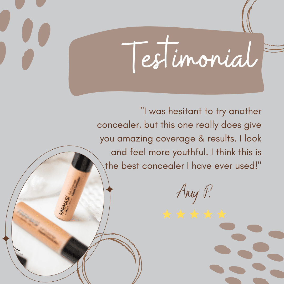 I have tried many different brands of concealer, and have never found one that I truly loved. While is am still young “ish” at 40, I still have fine lines and wrinkles under my eyes. Any powder or concealer has always settled there and made me appear older than I actually was. I had given up on wearing concealer because of this reason, but the new Farmasi Liquid Concealer has changed the game for me and so many of my wonderful customers.